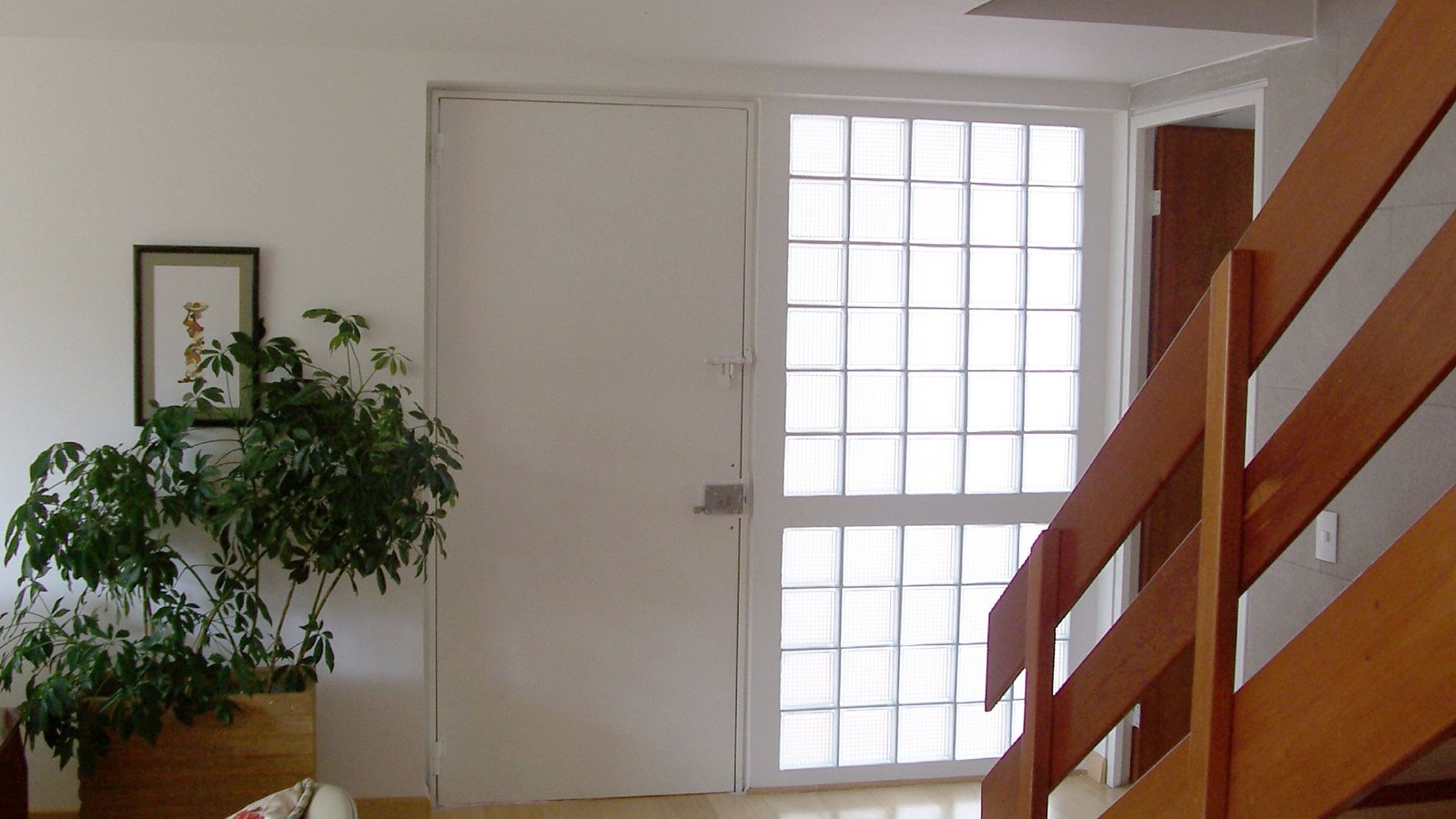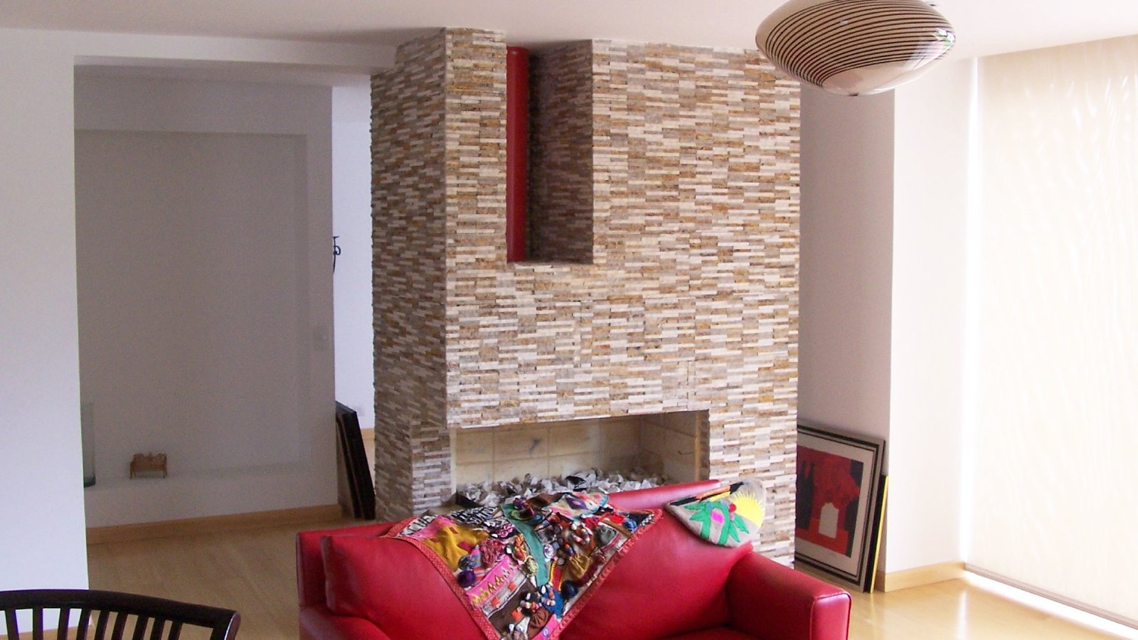 Ampliación y remodelación de estilo minimalista y moderno que respeta la esencia original: se renuevan todos los espacios con madera y porcelanato para lograr una atmósfera cálida y contemporánea; la zona social incorpora una chimenea moderna y el acceso se realza con bloques de vidrio que aportan luz y carácter desde la entrada.